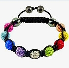 Fantastic value & our best quality multi coloured 9 crystal ball shamballa bracelet on black cord.